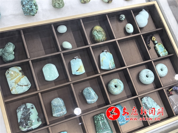 淺綠、天藍(lán)、深綠……漫步在白河綠松石博物館,聆聽著千年間白河綠松石的歷史傳說,入目皆是美不勝收的碧綠淺藍(lán)綠松石雕刻、首飾,恍惚中,便覺得瑰麗神秘的綠松石如那一泓清泉,藍(lán)綠相映,浮光掠金,明澈溫潤。