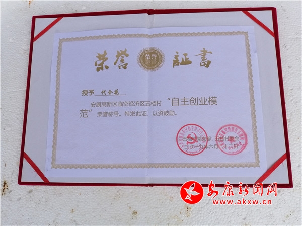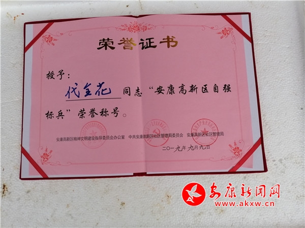 筆者從陳斌口中得知,2019年6月,代全花分別被安康高新區(qū)和五檔村黨支部、村委會授予“自強標(biāo)兵”和“自主創(chuàng)業(yè)模范”榮譽稱號,去年一家成功實現(xiàn)了脫貧。