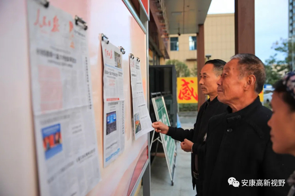 (居民在高新區(qū)建民社區(qū)“閱報(bào)欄”閱讀黨報(bào)黨刊)