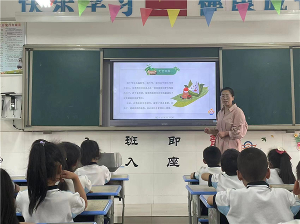下午,各班組織召開(kāi)了端午節(jié)主題班會(huì)。主題班會(huì)上師生一起追溯了端午節(jié)的由來(lái),講述了屈原的故事,讓學(xué)生明白端午節(jié)不只是粽子節(jié)、龍舟節(jié),更是民族節(jié)、愛(ài)國(guó)節(jié)。老師們還向?qū)W生介紹了有關(guān)端午的“端陽(yáng)”“重五節(jié)”“詩(shī)人節(jié)”“龍日”等不同內(nèi)涵的名稱,涉及端午懸掛艾草、佩香囊、賽龍舟、吃咸蛋、吃粽子等各地不盡相同的民風(fēng)習(xí)俗。
