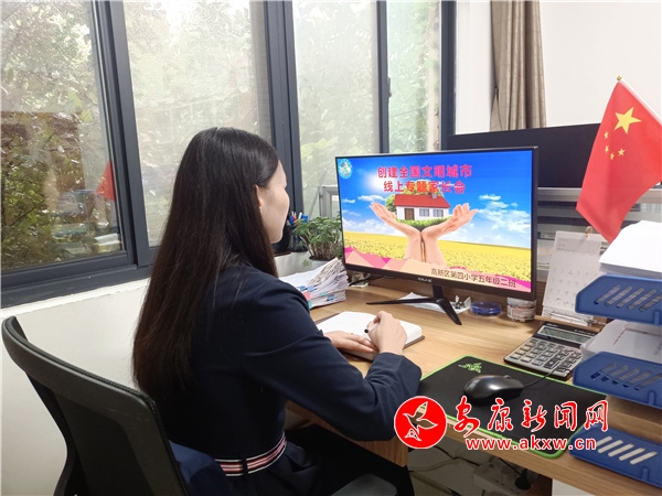 召開一次線上家長會。9月30日下午延時課時間,全校以班為單位召開了創(chuàng)文專題線上家長會,各班主任通過創(chuàng)文宣傳片、《創(chuàng)文知識宣講材料》、問卷調(diào)查等形式向參會家長廣泛宣講創(chuàng)文知識,進一步提高創(chuàng)文暨未成建設(shè)工作的知曉率與參與率。并從家庭教育的角度,向各位家長倡議:構(gòu)建文明家庭,以身作則,與孩子一道成為文明市民,為我市創(chuàng)文工作貢獻力量。