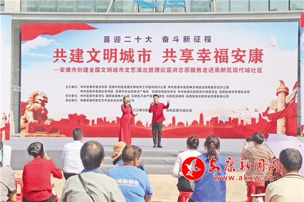 9月9日,一場以“共建文明城市,共享幸福安康”為主題的文藝演出和理論宣講活動在高新現(xiàn)代城社區(qū)舉行。整場活動,除了有群眾喜聞樂見的文藝節(jié)目,還設(shè)置有創(chuàng)建知識問答互動和創(chuàng)文知識專題宣講,F(xiàn)場,志愿者們還熱情地向群眾發(fā)放印有創(chuàng)文內(nèi)容的宣傳冊、涼扇、垃圾袋等,大家紛紛贊揚(yáng):“形式生動活潑,宣傳入腦入心!”