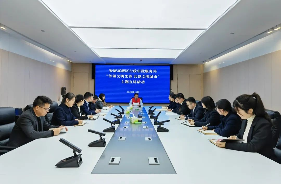 11月17日下午,安康高新區(qū)行政審批服務局舉行“我是崇德向上安康人 我為文明安康做代言”宣講活動,活動圍繞“爭做文明有禮人 共創(chuàng)全國文明城”主題開展了敬業(yè)奉獻類代言人宣講和展示。