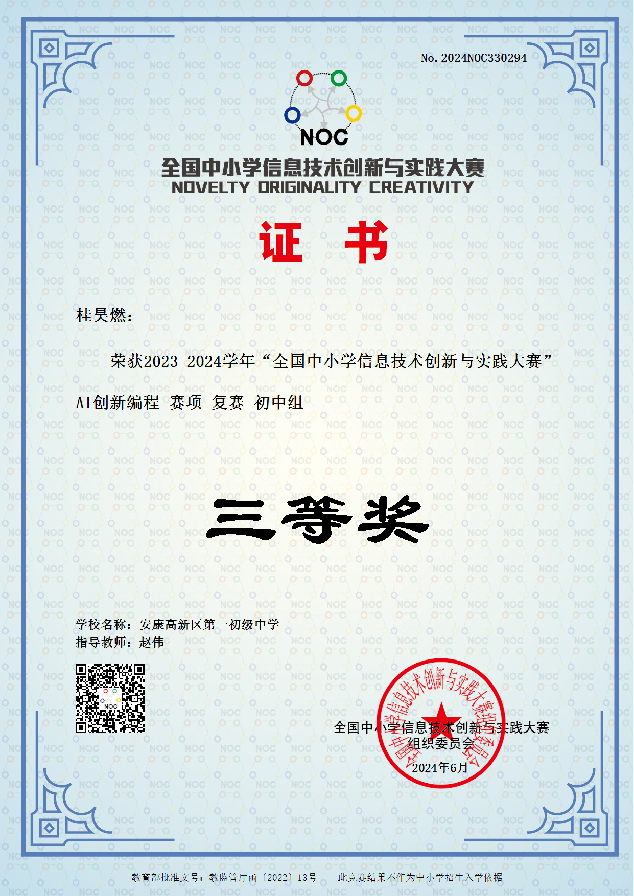 據(jù)悉,“全國中小學信息技術(shù)創(chuàng)新與實踐大賽(NOC,全稱為Novelty, Originality, Creativity)”是全國性的權(quán)威賽事,屬教育部白名單賽事,是一項運用信息技術(shù),培養(yǎng)廣大師生的創(chuàng)新精神和實踐能力,面向青少年學生開展人工智能科學普及、引領(lǐng)科技創(chuàng)新的素質(zhì)教育實踐平臺。