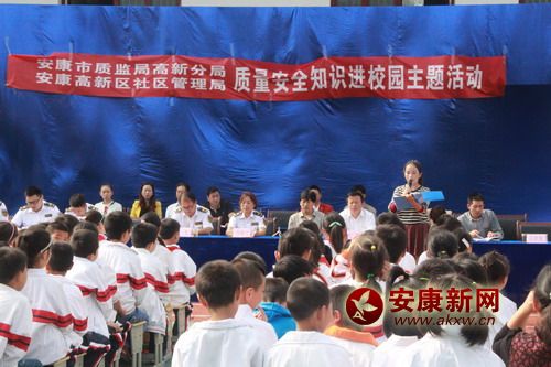 安康新網(wǎng)訊 (通訊員 周秋)9月30日,高新區(qū)質(zhì)量安全知識進校園主題活動在聯(lián)合小學(xué)舉行,該活動由市質(zhì)監(jiān)局高新分局和高新區(qū)社區(qū)管理局舉辦。全校500多名師生和來自全區(qū)16所中小學(xué)及幼兒園的安全專干參加了活動。在互動中,同學(xué)們熱情高漲,舉手搶答問題。fpa安康新聞網(wǎng) fpa安康新聞網(wǎng) fpa安康新聞網(wǎng) 活動現(xiàn)場