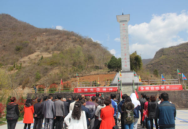 黨員代表們懷著崇敬的心情,相聚在紫荊河畔陜南人民抗日第一軍成立地紀念廣場追憶和悼念革命先烈。在革命烈士紀念碑前重溫了入黨誓詞,并敬獻了花籃。隨后跟著講解員,認真參觀了陜南人民抗日第一軍成立地紀念廣場。黨員干部以“重走先烈路,追憶先烈志”和 “緬懷先烈事跡,弘揚先烈精神”活動,以特有的方式學習了先烈事跡,領會了先烈精神。