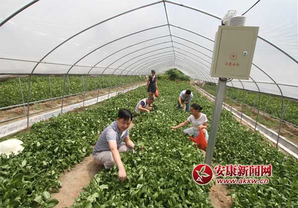 安康新聞網(wǎng)訊 (記者 王擁)7月27日,游客正在漢濱區(qū)大河鎮(zhèn)尚硒現(xiàn)代農(nóng)業(yè)園區(qū)采摘降壓菜。園區(qū)負(fù)責(zé)人王彩春拿出手機(jī)點擊按鈕,手機(jī)上彈出園區(qū)一角,每個大棚實時的溫度、濕度、光照、風(fēng)速、風(fēng)向、雨量等信息也一目了然。他說,這是園區(qū)安裝的智能化系統(tǒng),將物聯(lián)網(wǎng)技術(shù)運(yùn)用到傳統(tǒng)農(nóng)業(yè)中,通過移動平臺,對農(nóng)業(yè)生產(chǎn)進(jìn)行控制,使傳統(tǒng)農(nóng)業(yè)更具智慧。據(jù)悉,該園區(qū)是我市首家投入運(yùn)營“智慧農(nóng)業(yè)”的園區(qū)。