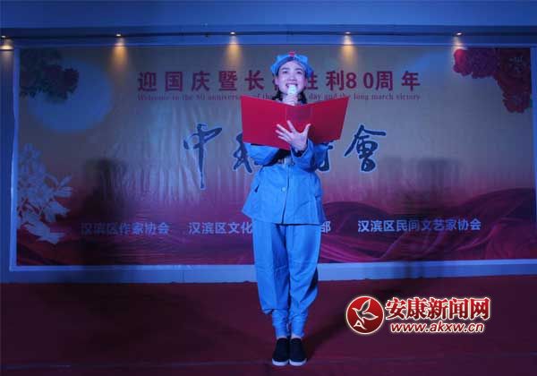 本場詩會共分三章舉行。第一章以古今中外描寫中秋及月亮主題的作品,《同心邀明月》、《春江花月夜》等詩朗誦讓人心潮澎湃,《荷塘月色》等舞蹈給人以視角的盛宴;第二章歌頌長征及愛國主題作品,演員們通過詩朗誦、快板等形式,表達(dá)了對美好生活的歌頌。第三章自創(chuàng)作品表演,安康作家們深情朗誦自己創(chuàng)作的詩歌,抒發(fā)了內(nèi)心的情感,一曲《陽光路上》把晚會推向了高潮。