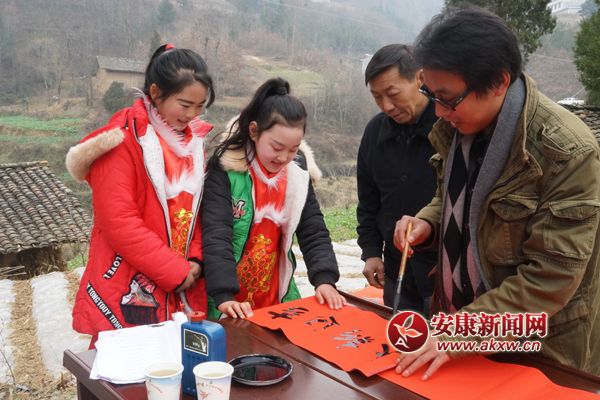 安康新聞網(wǎng)訊(通訊員 惠星) 1月16日上午,漢濱區(qū)壩河鎮(zhèn)寺姑村百姓大舞臺前一片喜慶,由漢濱區(qū)文廣旅游局、漢濱區(qū)文化館組織舉辦的“萬副春聯(lián)進(jìn)農(nóng)家”活動在這里舉辦。數(shù)十名書法家們齊聚一堂,揮毫潑墨,為當(dāng)?shù)厝罕娒赓M(fèi)書寫春聯(lián)。