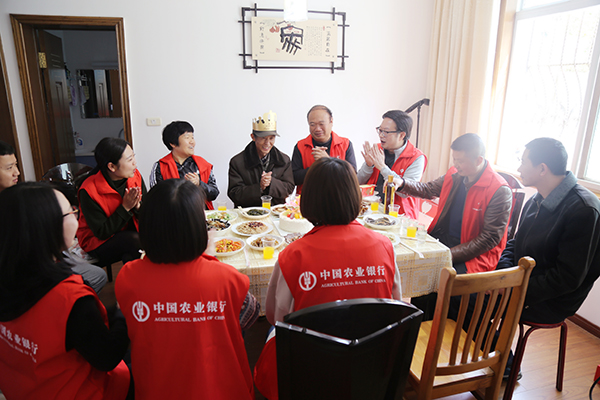 生日當(dāng)天,漢濱農(nóng)行副行長(zhǎng)董曉春代表領(lǐng)導(dǎo)班子攜部分青年員工,帶著對(duì)空巢老人的濃濃關(guān)愛(ài)和厚重的生日禮物,來(lái)到我的住室,陪我度過(guò)了一個(gè)頗具特殊社會(huì)意義的生日。幾位領(lǐng)導(dǎo)同我聊天,向我噓寒問(wèn)暖。青年人給我洗衣拖地,替我做飯。一時(shí)間,住室里如春風(fēng)柔沐,暖日曛曛,彌揚(yáng)著濃濃的溫暖和愛(ài)意,給一個(gè)老人心里注入了非比一般的欣慰,驅(qū)盡了獨(dú)居生活的寂寞。他們的愛(ài)心給我送來(lái)一次最為幸福的生命享受。