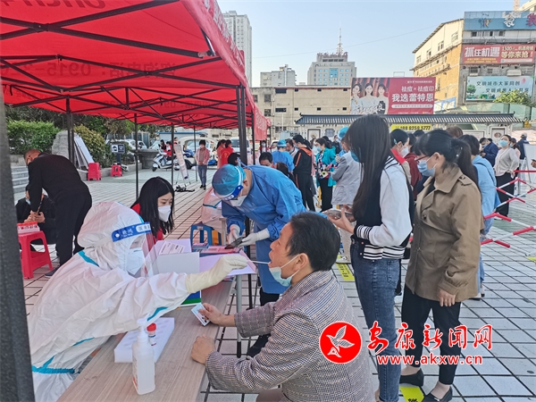 5月4日早上7點(diǎn)開始,漢濱區(qū)主城區(qū)內(nèi)有序開展重點(diǎn)人員全員核酸檢測(cè)工作。(陳榮斌 攝) Yhi安康新聞網(wǎng)