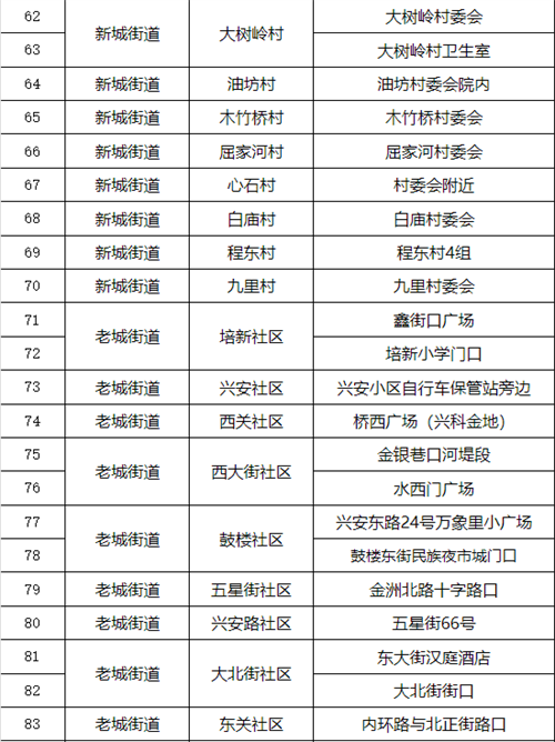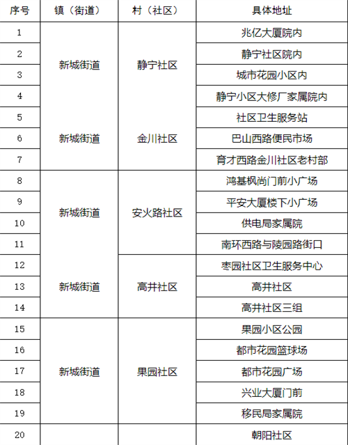 漢濱區(qū)中心城區(qū)全員核酸檢測采樣點(diǎn)一覽表