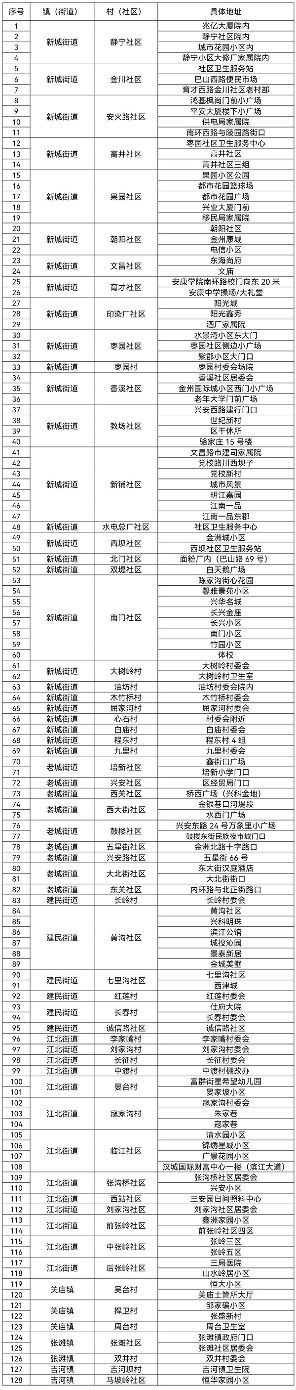 共設置128個采樣點(見附件),由各街道辦、鎮(zhèn)政府統(tǒng)一安排采樣點設置、人員組織、秩序維護。檢測對象按照街道辦和鎮(zhèn)政府要求,分時段有序到指定地點進行采樣,避免人員聚集。