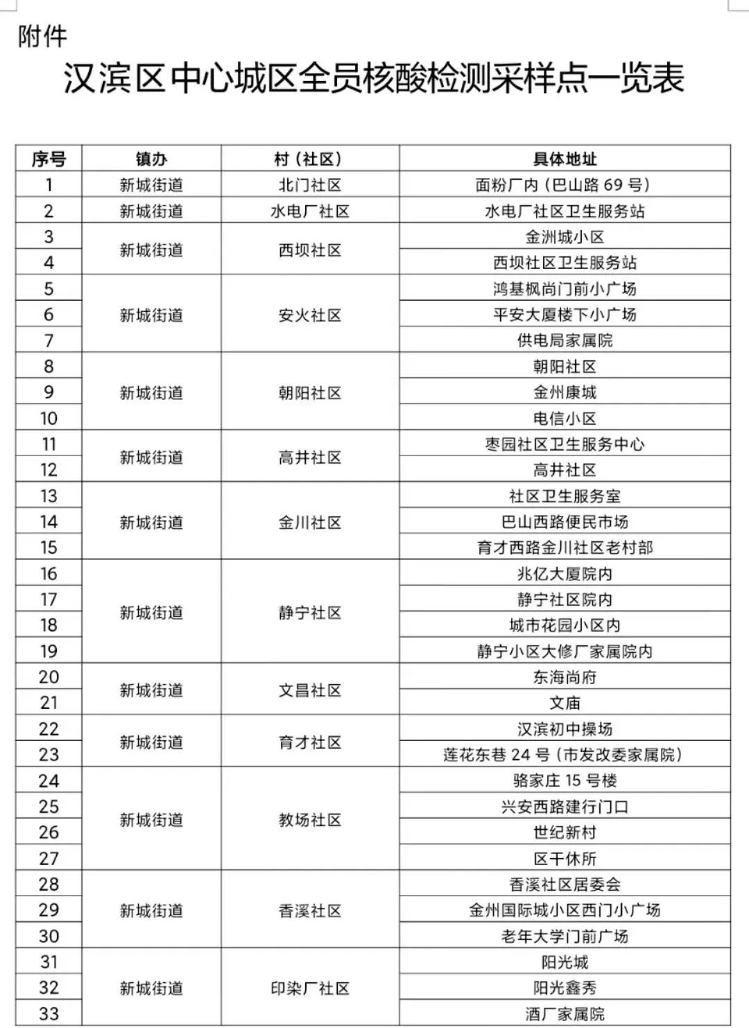 漢濱區(qū)老城街道、建民街道、新城街道、江北街道及關廟鎮(zhèn)、吉河鎮(zhèn)中心城區(qū)范圍(具體見附件所列村、社區(qū))常住和流動人員一律參加核酸檢測。