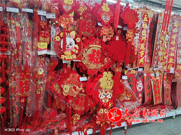 年貨市場一片火熱,瓜果、蔬菜、肉類、年畫應(yīng)有盡有,處處洋溢著節(jié)日的喜慶,呈現(xiàn)出購銷兩旺的紅火景象。超市、店鋪年貨琳瑯滿目,商家用各種的優(yōu)惠招攬顧客。