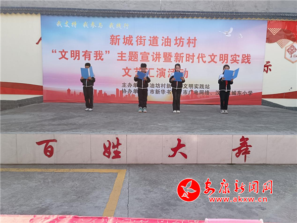 本網(wǎng)訊(通訊員 徐聰)3月3日,由油坊村新時(shí)代文明實(shí)踐站主辦,安康市新華書店、市廣電網(wǎng)絡(luò)、漢濱區(qū)城東小學(xué)協(xié)辦“文明有我”主題宣講暨新時(shí)代文明實(shí)踐文藝匯演活動(dòng)在油坊村舉行。