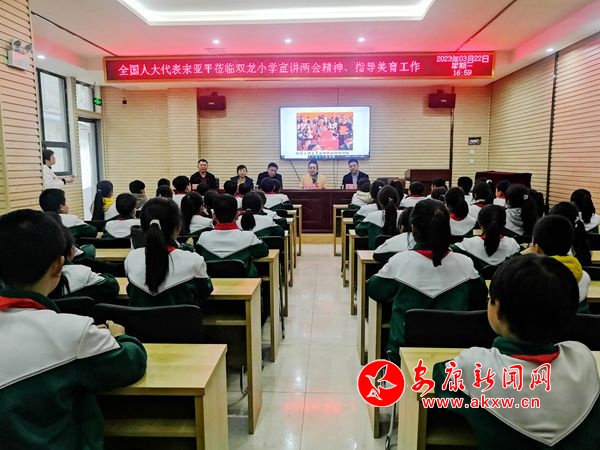期間,宋亞平借助參會圖片,向雙龍鎮(zhèn)師生宣講了2023年全國“兩會”盛況及主要精神,希望山區(qū)學校組織師生深入學習宣傳“兩會”精神,迅速把思想和行動統(tǒng)一到全國“兩會”決策部署上來,認真貫徹黨的教育方針,落實立德樹人根本任務,堅持“五育并舉”,建立美育基地長效運行機制,堅持以賽促學,堅持美育與研學融合發(fā)展,扎實推進學校美育工作走深走實,引領鄉(xiāng)村學校特色發(fā)展、內涵發(fā)展;勉勵山區(qū)學生感恩奮進,樹立遠大志向,刻苦學習,用知識改變命運,用心觀察身邊生活,用心創(chuàng)作展示鄉(xiāng)村之美,抒發(fā)對美好生活的向往,展現(xiàn)愛黨、愛國、愛家鄉(xiāng)的情懷,在美育的熏陶下全面發(fā)展,努力成為德智體美勞全面發(fā)展的社會主義建設者和接班人。