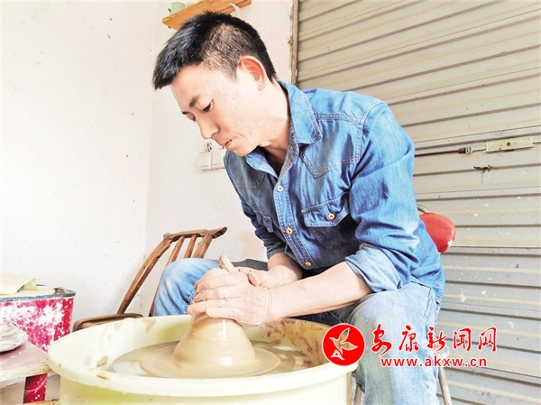 走進(jìn)漢濱區(qū)石梯鎮(zhèn)葉溝村漢水陶藝工作室,琳瑯滿目的茶器、碗具、泥塑等大大小小的陶藝作品,都出自來顯軍之手。38歲的來顯軍看似有些內(nèi)斂,卻很有內(nèi)涵,他說,生活在農(nóng)村,從小就喜歡玩泥巴,跟隨爺爺學(xué)習(xí)泥塑,用泥巴捏各種各樣的東西。就這樣,泥巴在他手里玩活了。