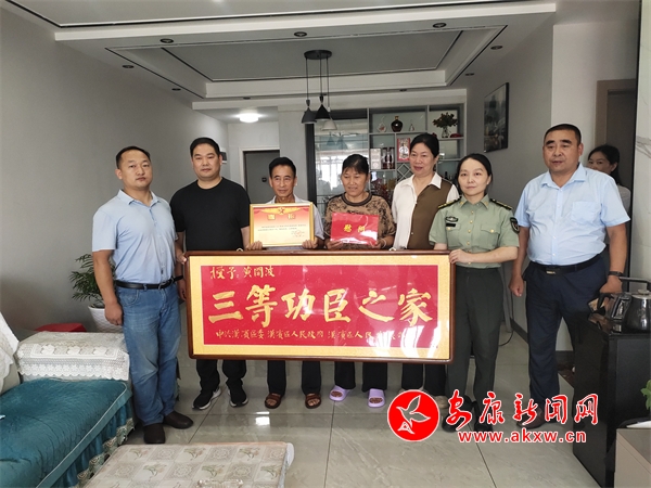 “感謝你們?yōu)閲澜ㄔO(shè)的大力支持和默默付出,也感謝你們?yōu)椴筷?duì)培養(yǎng)了一名優(yōu)秀的士兵,一人立功、全家光榮,希望你們繼續(xù)做好兒子的堅(jiān)強(qiáng)后盾,讓孩子在部隊(duì)再立新功。”在現(xiàn)役軍人黃開波的家里,鎮(zhèn)領(lǐng)導(dǎo)把一面“三等功之家”的牌匾送到黃開波的父親黃朝德的手里時動情地說。