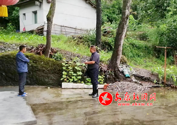 簡短布置任務(wù)后,“四支隊伍”工作人員趕赴本村9組的幾戶有滑坡危險的農(nóng)戶家,詳細查看其房前屋后情況,并叮囑監(jiān)測人及戶內(nèi)成員,要密切關(guān)注雨情變化,服從工作人員的安排,監(jiān)測部位每一小時要巡查一次。遇有異常情況要及時報告,并果斷采取撤離措施,第一時間將人員撤離到指定的安置戶家中,確保生命安全,同時要求鄰里之間的要發(fā)揮鄰里互幫作風(fēng),積極協(xié)助監(jiān)測人做好信息傳遞和人員轉(zhuǎn)移、撤離工作。