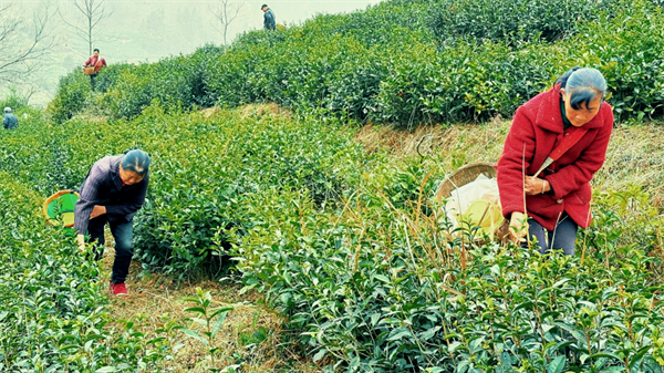 “山川秀美”茶園種植面積有1680余畝,現(xiàn)已完成主要核心區(qū)60%的管護工作。作為一家集種植、生產(chǎn)、加工、銷售、生態(tài)旅游為一體的優(yōu)質(zhì)茶葉示范園區(qū),其涵蓋的多環(huán)節(jié)務(wù)工需求,也給周邊的農(nóng)戶提供了大量的就業(yè)崗位,多年以來,山川秀美農(nóng)業(yè)有限公司通過深入構(gòu)建“園區(qū)+合作社+農(nóng)戶”幫扶體系,采取園區(qū)務(wù)工、承包經(jīng)營、提供種苗、產(chǎn)品訂單回收、技術(shù)培訓(xùn)指導(dǎo)等多種幫扶形式,累計惠及周邊5個村組300余人就業(yè)增收,真正讓村民實現(xiàn)了家門口的幸福就業(yè)。