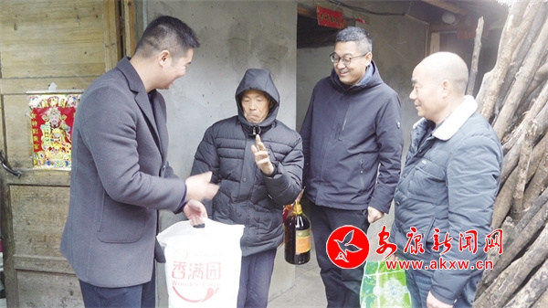 “過年好。恭喜發(fā)財(cái)!”“萬物呈祥榮盛世 九龍獻(xiàn)瑞慶良辰。這副對(duì)聯(lián)美得很。”“氣溫低,取暖注意安全。”漢濱區(qū)人社局派駐瀛湖鎮(zhèn)陽坡村第一書記李大林和村黨支部書記晏真云一路邊和鄉(xiāng)親們打著招呼、送去祝福,邊叮囑著冬季取暖安全和森林防火等相關(guān)注意事項(xiàng),兩人徑直走到了村民晏世全家中。
