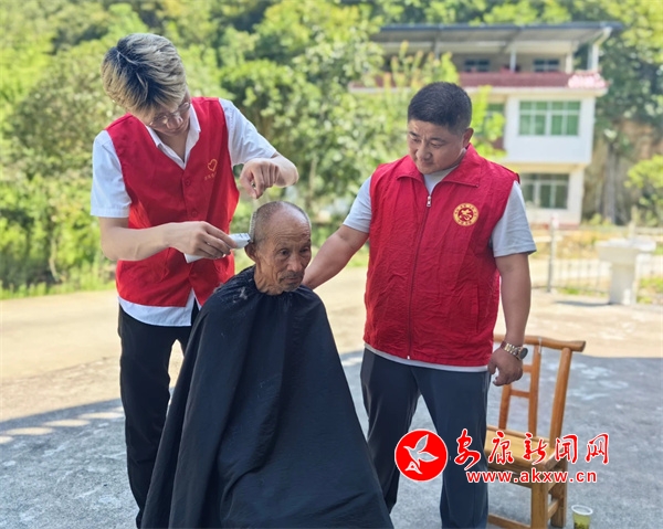 鎮(zhèn)村志愿者在汪河村為老人免費理發(fā)