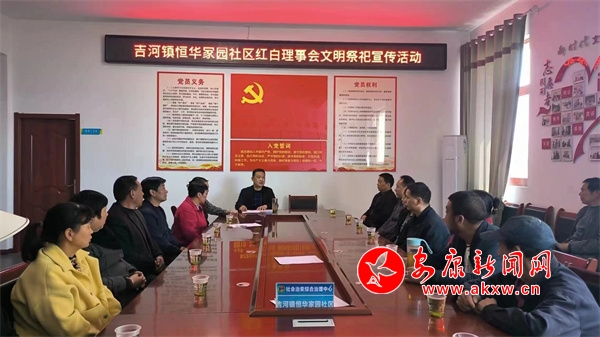 “清明節(jié)是祭奠先人、緬懷逝者、寄托哀思的日子,我們要抓住這個重點時間節(jié)點,通過持續(xù)的宣傳引導(dǎo)和政策解讀,推動移風(fēng)易俗、文明祭掃理念深入人心。”理事會組織社區(qū)干部、部分黨員群眾代表學(xué)習(xí)了《紅白理事會章程》,宣讀了《2024年清明節(jié)文明祭掃倡議書》,安排部署了當(dāng)前森林防火工作,號召大家遵守社會公德,用綠色、健康、簡約的祭掃方式表達(dá)對逝去親人的思念之情,減少集中出行發(fā)生交通堵塞、焚燒紙錢造成火災(zāi)隱患情況發(fā)生。