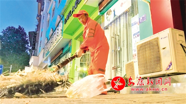 “要趕在早高峰之前完成第一次大掃,等天亮好了路上車多就掃不成了。大掃完還要在仔細(xì)打掃兩遍,差不多就到學(xué)生娃們上學(xué)的時間了,得去學(xué)校附近撿紙屑。”說完花子強加快了打掃的動作。