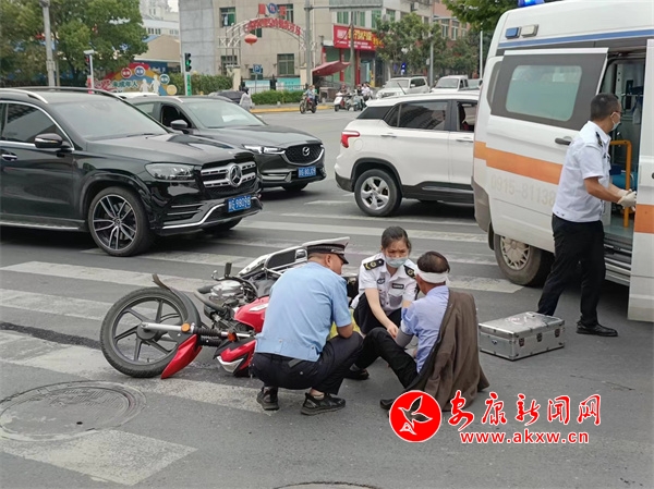 6月2日下午6時許,漢濱區(qū)育才西路至瀛湖方向十字路口發(fā)生一起交通事故,一輛黑色奔馳越野車和一輛二輪摩托車發(fā)生相撞,騎摩托的男子被撞翻在地,面部頭部和嘴都受傷流血,當時正值車輛高峰期,在此執(zhí)勤的江南交警中隊民警張聲榜第一時間撥打“120”救護車并和122事故處理中隊,同時疏導交通避免造成堵塞。120救護車為傷者緊急處理后迅速送往醫(yī)院救治,目前事故原因正在進一步調查中。(圖文/張樹進)uD4安康新聞網(wǎng)