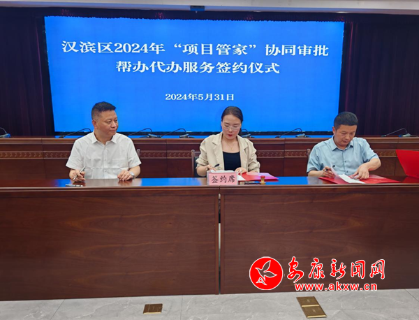 本網(wǎng)訊(通訊員 李文婷)5月31日,漢濱區(qū)行政審批服務(wù)局組織召開全區(qū)2024年“項目管家”協(xié)同審批幫辦代辦工作會議。會議上市區(qū)行政審批服務(wù)局、相關(guān)項目主管單位與24個重點項目負(fù)責(zé)人簽訂了幫辦代辦服務(wù)協(xié)議。