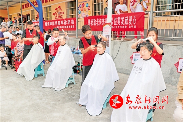 現場,通過有獎問答、發(fā)放宣傳資料、設立咨詢臺等形式,向村民進行平安建設、普法、反詐等宣傳。來自漢濱區(qū)陽光愛心護理院的志愿者們?yōu)槔先藗兲峁┙】抵笇。愛心人士龔甲超組織的義剪活動也受到了老人們的歡迎,志愿者們免費為現場50多名老人理發(fā)。書法家們現場圍繞“孝義”主題進行創(chuàng)作,并贈送給群眾。演出結束后,近百名老人到社區(qū)的孝義食堂參觀和免費用餐。