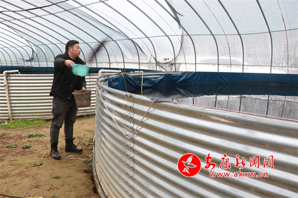 眼下已是深冬時節(jié),戶外天寒地凍、萬物沉寂,然而漢濱區(qū)雙龍鎮(zhèn)雙龍社區(qū)東糧和諧養(yǎng)殖農(nóng)民專業(yè)合作社卻是一派繁忙景象。生態(tài)養(yǎng)魚大棚里,一個個魚池整齊排列,幾名工作人員正手拿工具和飼料,在各個魚池間來回忙碌。雙龍社區(qū)是漢濱區(qū)雙龍鎮(zhèn)集鎮(zhèn)所在地,東與漢濱區(qū)晏壩鎮(zhèn)相鄰,南與平利縣三陽鎮(zhèn)接壤。長期以來,雙龍社區(qū)以茶葉種植、生豬養(yǎng)殖為主導產(chǎn)業(yè),但主要經(jīng)濟收入仍以勞務輸出為主,缺乏可持續(xù)、投資小、見效快和效益高的拳頭項目。