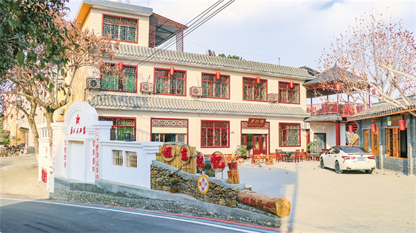 村委會對面,村民詹永斌站在院子里,樂呵呵地向前來探親的侄子們介紹起改造前后的變化。“去年這時候,我家側(cè)面還是光禿禿的水泥墻,現(xiàn)在政府有好政策,農(nóng)房改造補(bǔ)貼一萬五,把家里的外墻、屋檐、屋頂全部做了美化,墻面也刷白了,看起來美觀不少。”