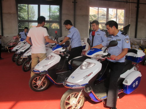 據(jù)秦鳳公司技術(shù)員沈杰介紹,這6輛警用電動車有別于市場上銷售的家用電動車,該車輛配件全系公安專用材料組裝而成。黏貼有警用徽章、公安圖標字樣,配備了專用警燈、喊話器及裝備箱等特殊材料。