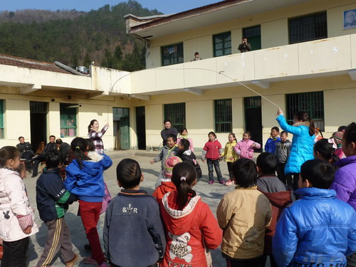 走出三星村,工作隊順程趕往五坪、清明寨、王家河三所小學,實地了解學校部室設施、課程開設、教師配置、教學秩序、營養(yǎng)餐等情況。在王家河的校園里,12位縣教體局干部和44名小學生共同開展了一節(jié)輕松快樂的課外活動。輕捷的身影在跳繩中跳來閃去,嫻熟的球技在乒乓桌上自如地揮灑,稚嫩的歡呼聲飄蕩在校園的上空,甜蜜的笑臉綻放在溫暖的陽光中。