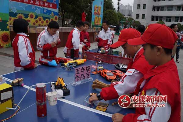 19日,校園科技節(jié)進(jìn)入最后的競(jìng)賽、展示階段。操場(chǎng)四周掛滿(mǎn)了學(xué)生優(yōu)秀科技小報(bào)和科幻畫(huà),參觀的同學(xué)們仿佛徜徉在神秘的科幻世界,為科技節(jié)營(yíng)造了濃厚的活動(dòng)氛圍。一至三年級(jí)學(xué)生進(jìn)行了自制紙飛機(jī)比賽,小小的飛機(jī)承載著童年的科技?jí)粝肼祜w舞。四至六年分別在舞臺(tái)前設(shè)立了科技小制作展覽區(qū),由小志愿者引導(dǎo)大家有序參觀并進(jìn)行操作講解。各種奇思妙想讓垃圾“變廢為寶”引得同學(xué)們贊嘆不已;飲料瓶、泡沫紙做成的坦克、天平、插花讓人大開(kāi)眼界;特別是遙控飛機(jī)、自制飛行器的展示表演讓大家感受到現(xiàn)代科技的無(wú)窮魅力......此外,組委會(huì)還對(duì)本次紙飛機(jī)比賽、科技作品的參評(píng)者進(jìn)行了表彰獎(jiǎng)勵(lì),號(hào)召同學(xué)們“全員參與、積極實(shí)踐、大膽想象、勇于創(chuàng)新”,做一個(gè)有夢(mèng)想的社會(huì)主義接班人。