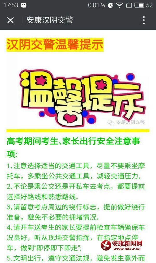 漢陰交警在此祝愿廣大莘莘學(xué)子圓夢(mèng)高考,金榜題名!祝各位駕駛員朋友及交通參與者生活愉快,平安出行!