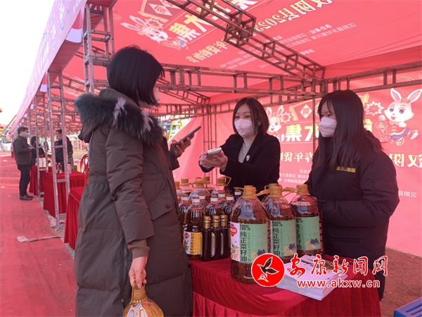 活動現(xiàn)場,伴隨著喜慶的音樂聲,攤位上擺滿了各種各樣的年貨,洋溢著濃濃的年味。市民們穿梭其中,漢陰炕炕饃、漢陽蒸盆子、純正菜籽油、臘肉和香腸、年節(jié)飾品等60余種商品齊聚這里,吸引著過往消費(fèi)者駐足品嘗、選購。