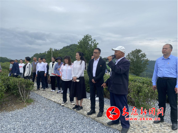 在女媧鳳凰茶業(yè)現(xiàn)代示范園區(qū),全體黨員干部在蔣家坪村原黨支部書記羅顯平的帶領(lǐng)下,追尋習(xí)近平總書記走過的足跡。一邊參觀綠水青山下的茶園美景,一邊感受綠水青山就是金山銀山的生態(tài)環(huán)境理念。