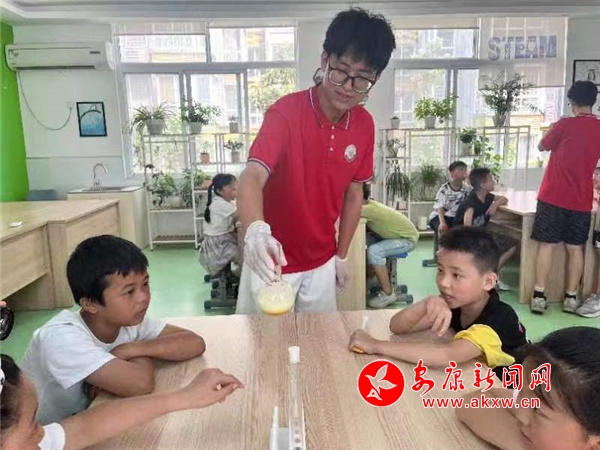 鳳臺小學(xué)學(xué)生郝錦燃表示,這些大哥哥大姐姐非常認(rèn)真負(fù)責(zé),給我們介紹一些知名的大學(xué),讓我們增長了見識。其次課間他們會帶我們打乒乓球、打籃球,帶我們做一些化學(xué)實(shí)驗(yàn),讓我們增長了知識,使我們的暑假過得更有意義。