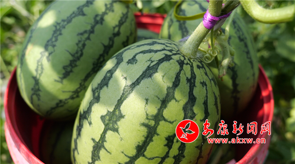據(jù)基地負(fù)責(zé)人蔡衛(wèi)東介紹,得益于洞河村優(yōu)越的自然環(huán)境,溫度、濕度適宜的大棚和先進(jìn)的栽培技術(shù),使得基地種出來的西瓜備受市場(chǎng)青睞。