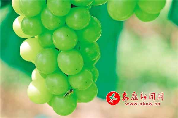 青脆李只是漢陰縣特色果業(yè)的一個縮影。走進(jìn)城關(guān)鎮(zhèn)三坪村,一串串陽光玫瑰葡萄被“保護(hù)”在套袋里,掛滿了藤架。取下袋子,一顆顆鮮嫩水靈的葡萄在陽光下晶瑩剔透、青翠欲滴,吃起來更是爽脆、甘甜,還帶著淡淡的玫瑰香味。工人在園內(nèi)修枝、摘果,滿園的葡萄傳遞著“豐收的信號”,一幅產(chǎn)業(yè)興、鄉(xiāng)村美、果農(nóng)富的甜蜜畫卷正悄然展開。