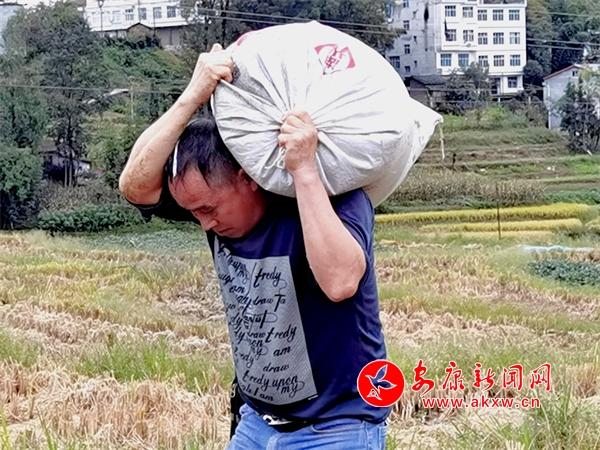9月30日,天氣剛剛放晴,漢陰縣鳳堰古梯田村民搶收稻田水稻,奪取秋糧豐收。(通訊員 林愛銘 林欽欽 吳淼淼)