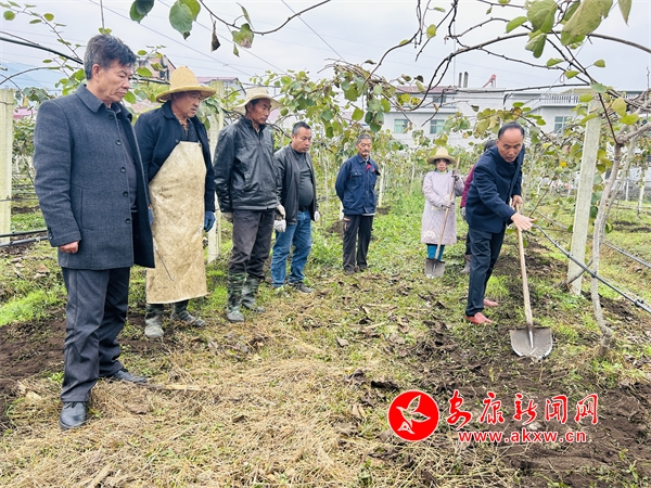 “獼猴桃園冬季管護,增施有機肥是改良土壤透氣性、增加土壤有機質含量的重要環(huán)節(jié),施肥的時候一定要注意,要給樹上多少肥料,主要要參考一下樹體的大小,還要看一下它土壤的肥沃情況……”在蒲溪鎮(zhèn)溪畔社區(qū)的獼猴桃種植基地,縣獼猴桃工作站的技術人員正在給基地務工人員現(xiàn)場講解獼猴桃施肥的標準和要求,講解結束后,工人們便分散到不同的獼猴桃種植地塊中,有條不紊地進行著施肥等管護工作。獼猴桃冬季管護尤為重要,通過開展獼猴桃冬季管護工作,可以加深農(nóng)戶對獼猴桃冬季管護技術的掌握,也為獼猴桃安全越冬,實現(xiàn)豐產(chǎn)豐收、助力產(chǎn)業(yè)發(fā)展提供保障。