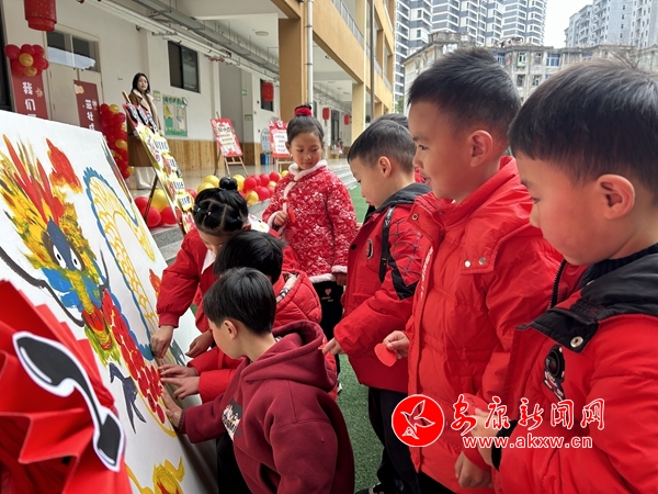 “這是我做的手工龍,今年是龍年,我今天很開心,又學到了新的知識,我要把這個龍帶回家給爺爺看。”小朋友吳錫雯一邊做手工一邊笑著說道。除了做手工,學校還舉行了升旗儀式,貼龍鱗,許心愿!孩子們紛紛在標簽紙上寫下新年愿望及美好祝福,化作一片片龍鱗,小心翼翼地貼在巨龍身上,寄語最美好的未來。