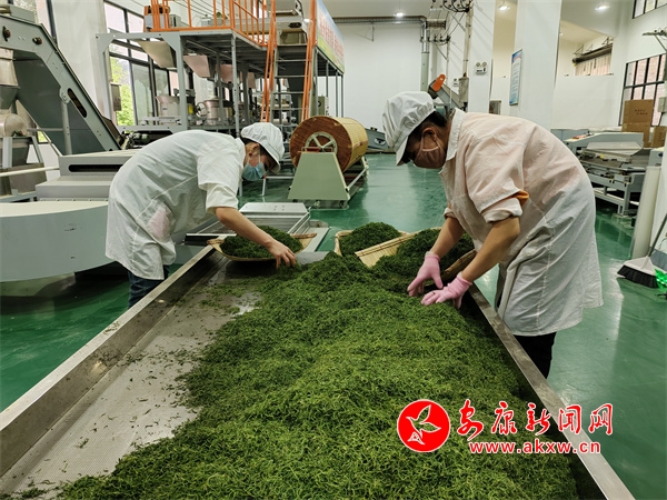 在漩渦區(qū)域加工廠的制茶生產(chǎn)車間內(nèi),鮮嫩的茶葉經(jīng)過殺青、揉捻、干燥、提香等程序,醇香的茶便新鮮出爐。“今年在開采之前,鎮(zhèn)政府面向茶葉產(chǎn)業(yè)合作社負責人和技術(shù)骨干組織了一次統(tǒng)一的培訓,對采摘手法,采摘標準進行了統(tǒng)一的指導培訓,便于我們后面的生產(chǎn)和后期產(chǎn)品的把控。”茶廠負責人馮衛(wèi)平說。