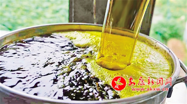 隨著隆隆的轟鳴聲,榨油師傅熱火朝天地忙碌著,炒籽、壓榨、過濾、精煉、沉淀、冷卻……一袋袋油菜籽投進(jìn)機(jī)器,經(jīng)過一道道嚴(yán)格的工序,一滴滴黃亮的菜籽油被制作出來。榨油坊雖然面積不大,但一直人來人往,熱熱鬧鬧,不時(shí)有鄉(xiāng)鄰們帶來自家的菜籽,排隊(duì)等候。“榨油干菜籽要炒成蛋黃色,半干濕的比蛋黃色深點(diǎn),濕菜籽要炒成牛油色,就達(dá)到標(biāo)準(zhǔn)了,榨出來的油才金黃噴香。”在油坊工作了30多年的王遠(yuǎn)成對(duì)如何榨出好油頗有心得。