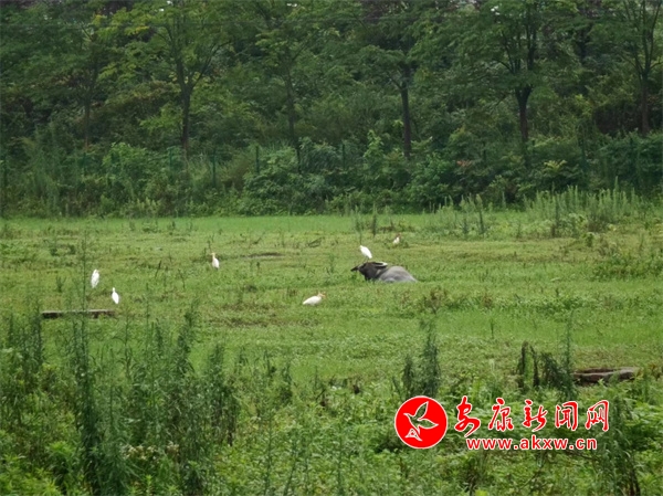 本網(wǎng)訊(通訊員 陳小惠)青青綠草地,牛伏月水畔,鷺鷥?nèi)逯唬c牛共棲息。日前,在漢陰縣澗池鎮(zhèn)樅嶺村月河之畔,一頭水牛正悠閑地臥在草地上小憩,幾只白鷺時(shí)而單腳站立在牛背上,時(shí)而俏皮地繞牛飛翔,構(gòu)成一幅優(yōu)美的動(dòng)態(tài)畫(huà)卷。