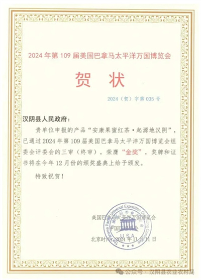 此次“安康果蜜紅·起源地漢陰”能夠在巴拿馬萬(wàn)國(guó)博覽會(huì)這個(gè)世界級(jí)舞臺(tái)上獲得金獎(jiǎng),是對(duì)安康富硒茶邁向國(guó)際的肯定,有利于擴(kuò)大和提升安康富硒茶的品牌影響力。下一步,漢陰將以此為契機(jī),加強(qiáng)技術(shù)指導(dǎo),推動(dòng)果蜜紅茶標(biāo)準(zhǔn)化生產(chǎn);并加大市場(chǎng)推廣力度,拓寬銷(xiāo)售渠道,提高產(chǎn)品的市場(chǎng)占有率;持續(xù)鼓勵(lì)創(chuàng)新,培育更多優(yōu)質(zhì)茶企業(yè),推動(dòng)茶產(chǎn)業(yè)轉(zhuǎn)型升級(jí)與高質(zhì)量發(fā)展,讓“安康果蜜紅.起源地漢陰”成為茶產(chǎn)業(yè)的一張亮麗名片,在國(guó)內(nèi)外市場(chǎng)大放異彩。